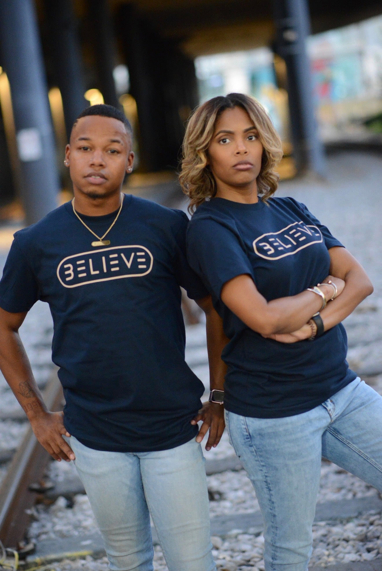 Embrace the power of belief and inspire others with our Navy Blue "Believe" Stylist T-shirt. Order yours today and make a statement of positivity!